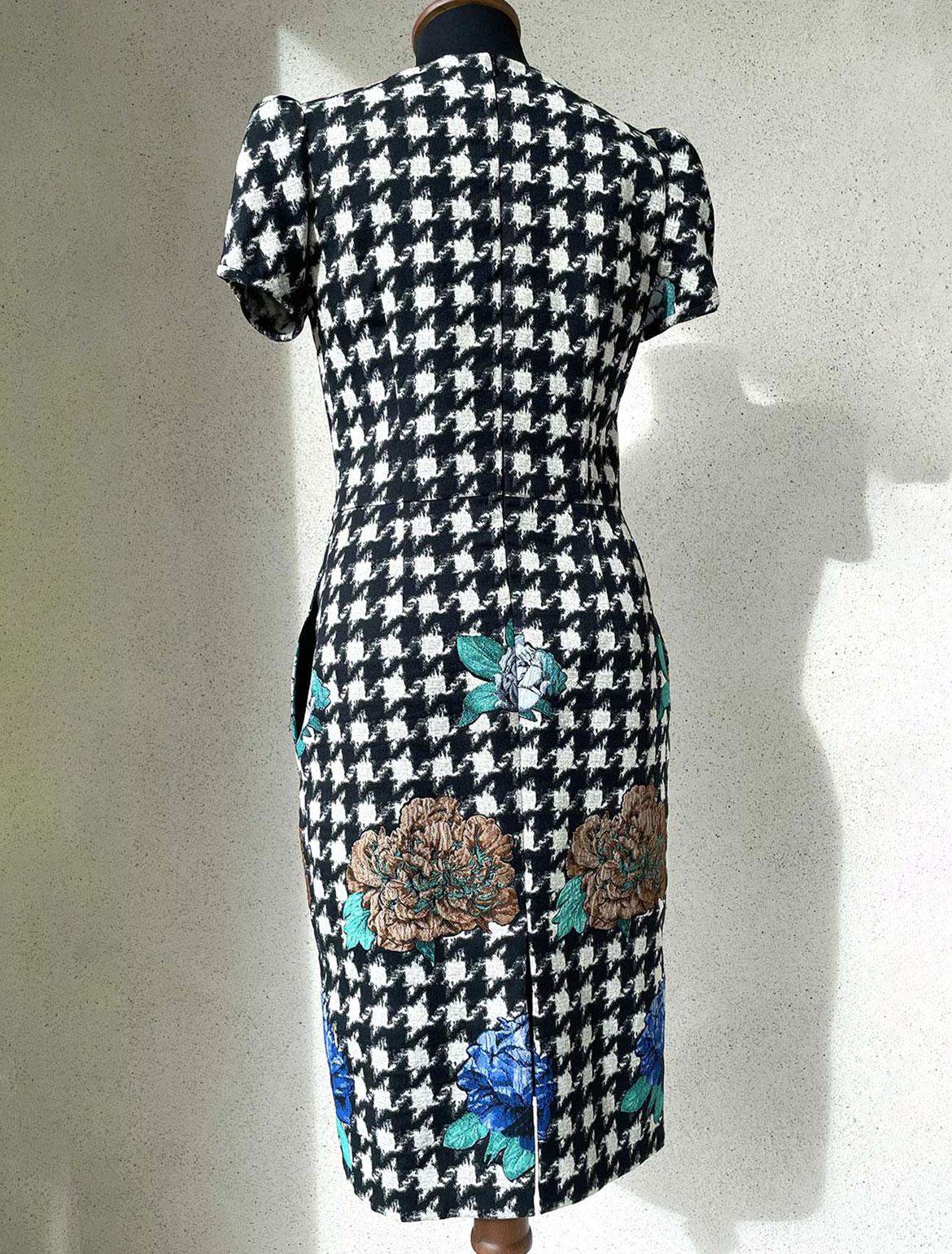 - Etuikleid mit „Glencheckmuster“ und seitlichen Eingriffstaschen