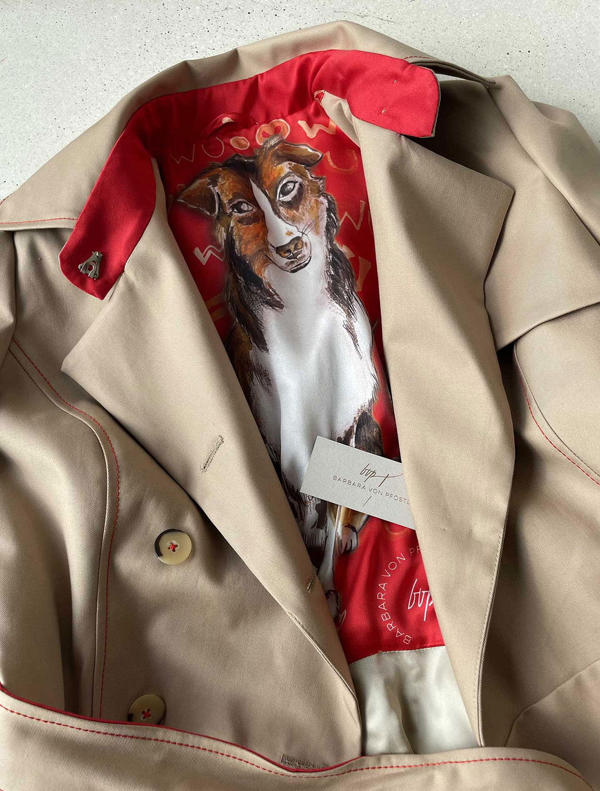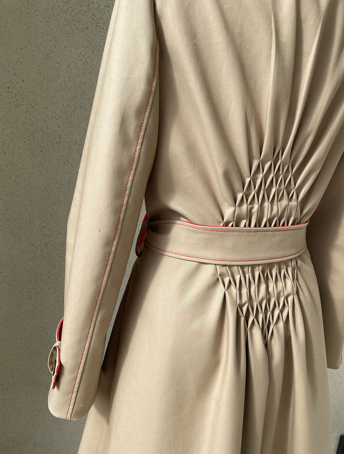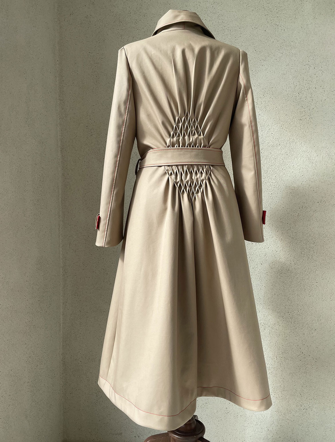 - Trenchcoat mit wunderschönem eingearbeiteten „Handsmok“im Rückenteil,