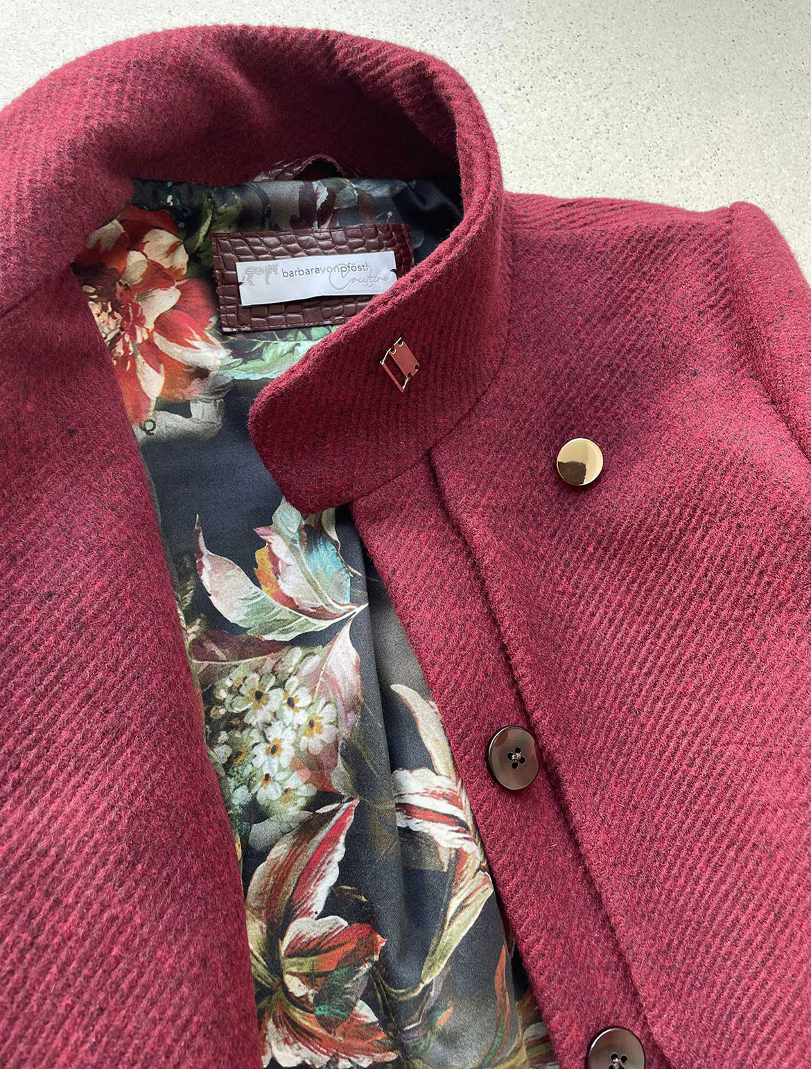 Alle meine Kleidungsstücke sind originelle Einzelstücke von hoher Qualität und werden aus hochwertigen Stoffen mit Liebe zum Detail gefertigt. Gerne schneidere ich Ihr persönliches Wunschkleidungsstück exklusiv für Sie auf Maß.