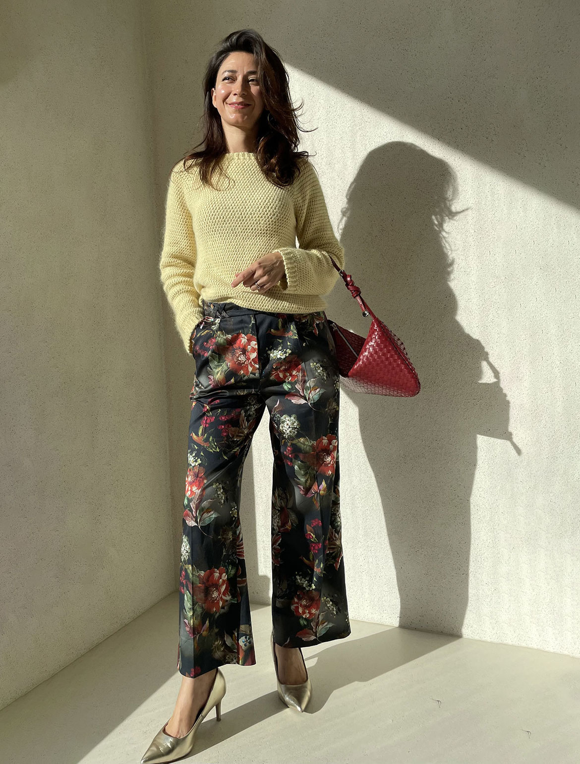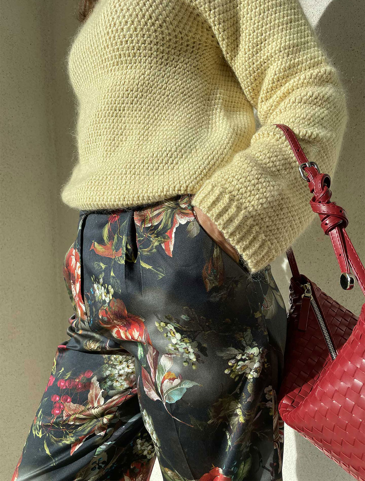 - Blumenhose mit besonderen Gürtelschlaufen und Eingriffstaschen
