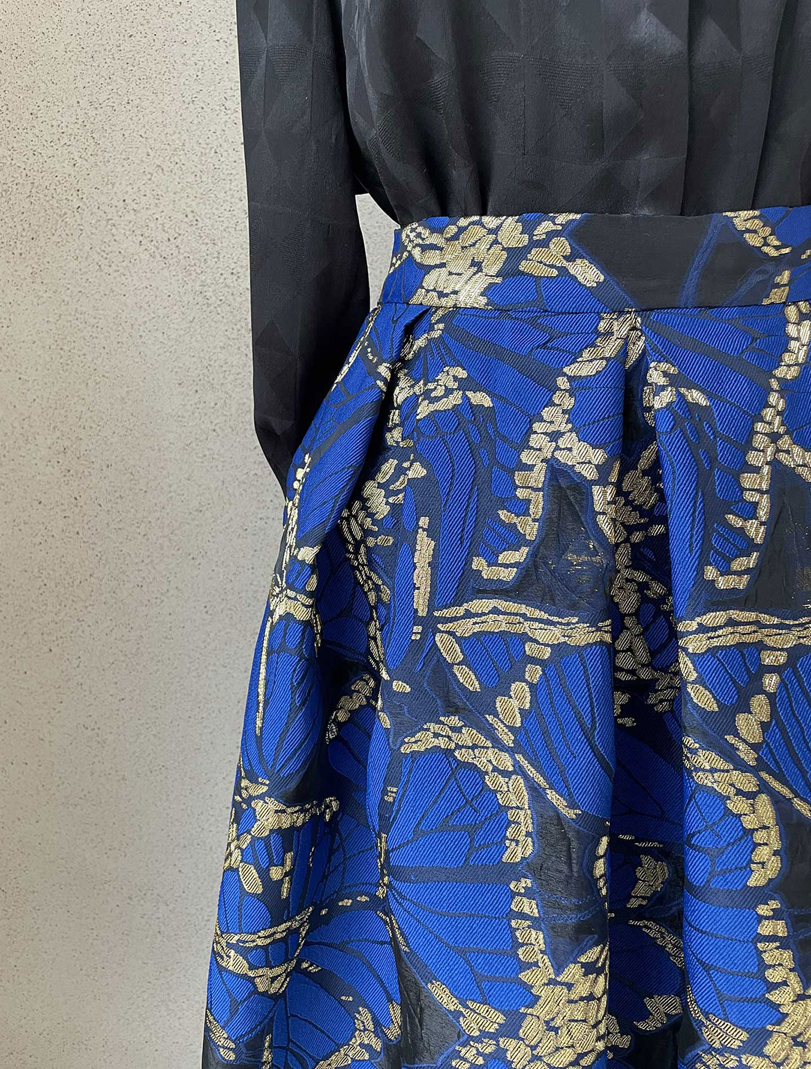 • EleganterBrokatfaltenrock mit seitlichen Eingriffstaschen